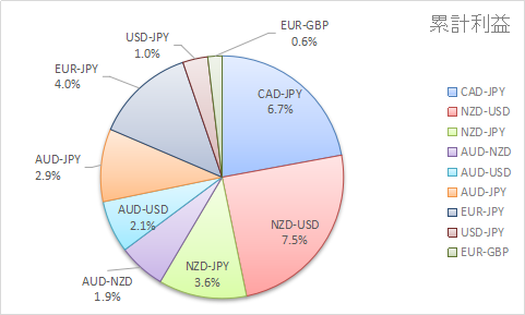 CAD-JPYとNZD-USDが稼ぎ頭になっていますね。USD-JPY以外は伸びだしているので、ドル円はやめようかな。