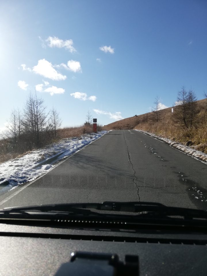 ビーナスラインはぶっちゃけはげ山なので地面と空が近い。上っているときは空に吸い込まれるような錯覚を感じます。ただ、雪に覆われた本当の真冬の時に来るとそこは人の侵入を拒絶するような死を連想する空間になります。それがまた、異世界に迷い込んだような感じで格別なのです。
