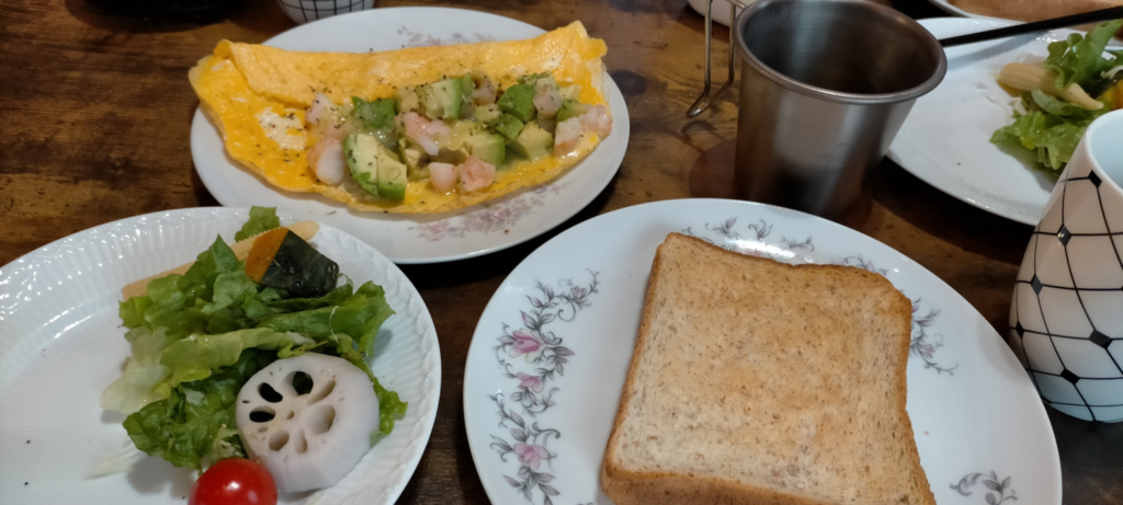 遅めの朝食。朝食を食べるだけで楽しい別荘生活
