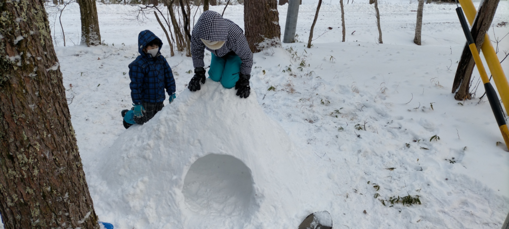 一日で20㎝程つもり、恒例のかまくらづくりが始まりました。氷点下もなんのその、子供たちは5時間ほど冷凍庫ではしゃいでいました。