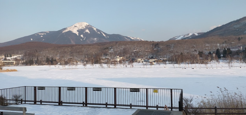 温かいといっても白樺湖は凍結して真っ白です。