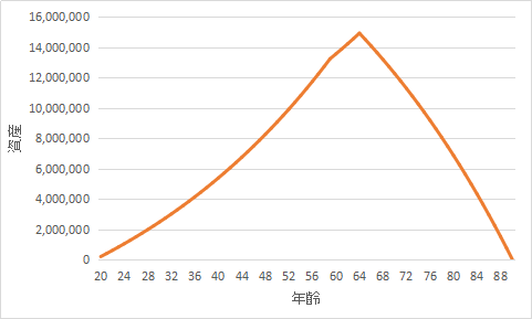 そこから年78万ずつ消費していき90歳でほぼ0となります。