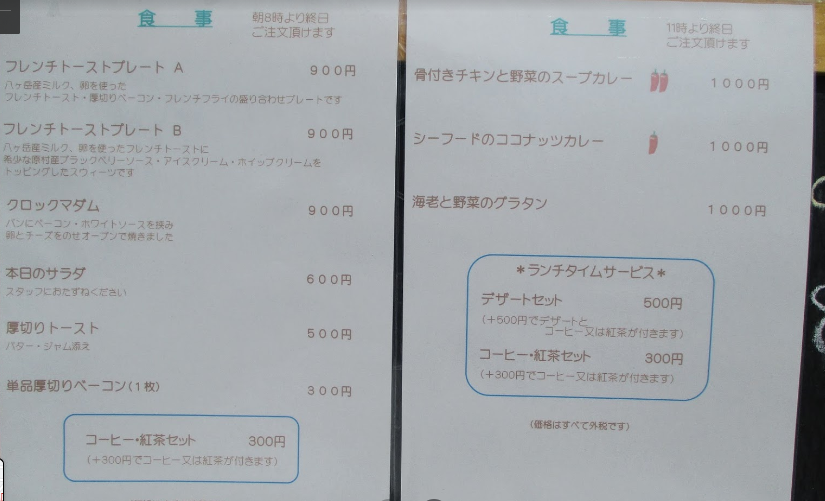 左から順にスープカレー、フレンチトーストA、グラタンです。原村マップの書いてあるペーパーシートを見ながらランチを楽しめます。八ヶ岳全般に言えることですが、とにかく野菜が新鮮でおいしい。こんな素敵なプレート料理なんで、素敵なお皿ですねと聞いたらなんと100均のものもあるとか。掘り出しものです!って行っていました。料理が素敵なのでお皿も素敵に見えるんですね。