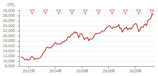 トラリピのもう一つのメリットは評価損が発生するときに大きな利益を得られることです。株は暴落した場合、元に戻るまでひたすら損失です。また復帰までの期間も数か月から数年と長いため、精神的にもよくありません。